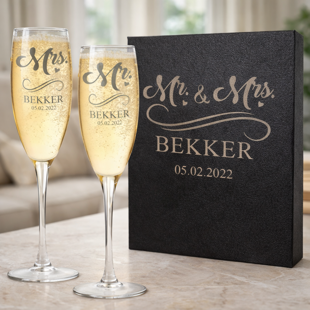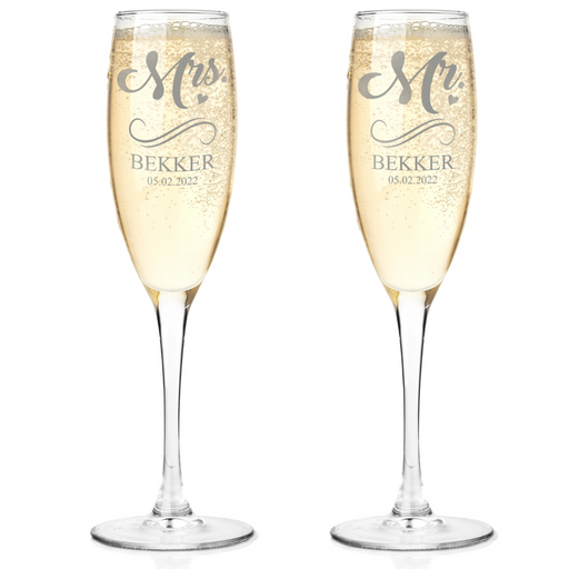 Personalized champagne glasses set of 2, laser engraved with the design & name of your choice. The champagne flutes glass are made from high qu...